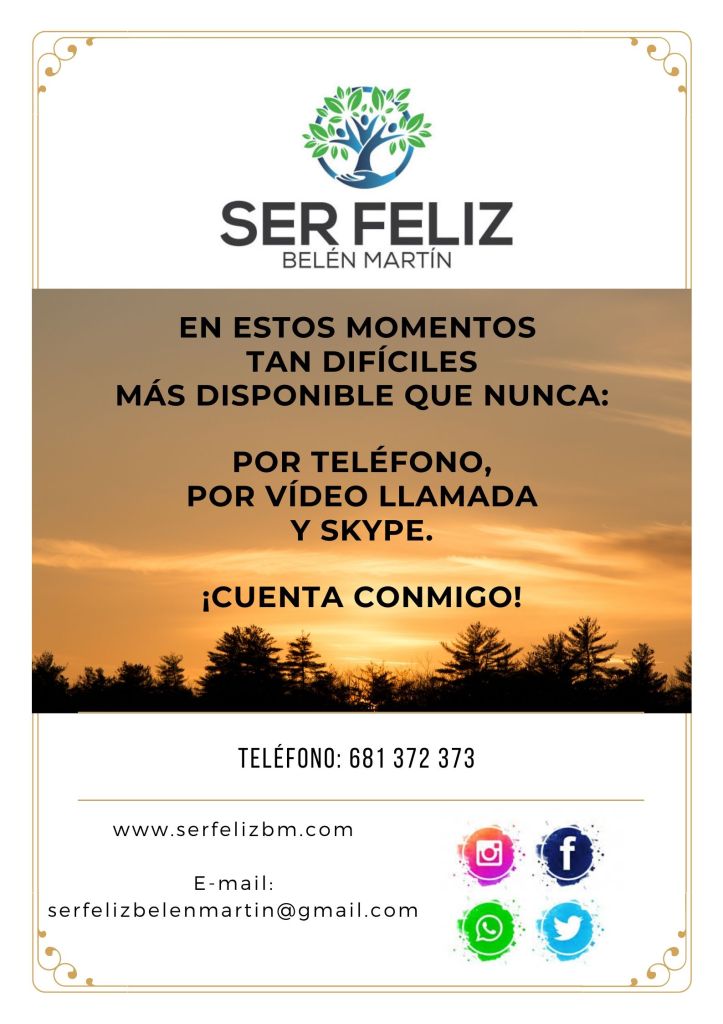 En estos momentos de vulnerabilidad psicológica es cuando estoy más disponible para vosotros: para informaros, evaluar, acompañar y trabajar el malestar que se ha acrecentado (si ya estuviera presente por cualquier motivo) o se ha presentado por primera vez (por las dificultades propias que suponen hacer frente a una situación extraordinaria como la que estamos viviendo), y ofreceros un entorno de tranquilidad, donde prime la información veraz, las medidas de seguridad, y las pautas, técnicas y estrategias adecuadas para dar respuesta a las dudas y conflictos que os puedan surgir.